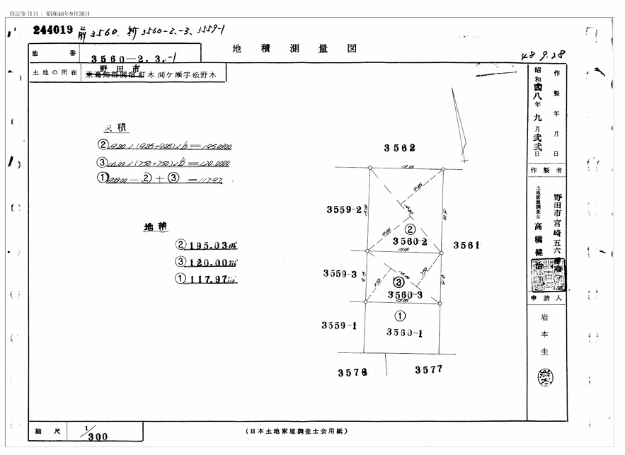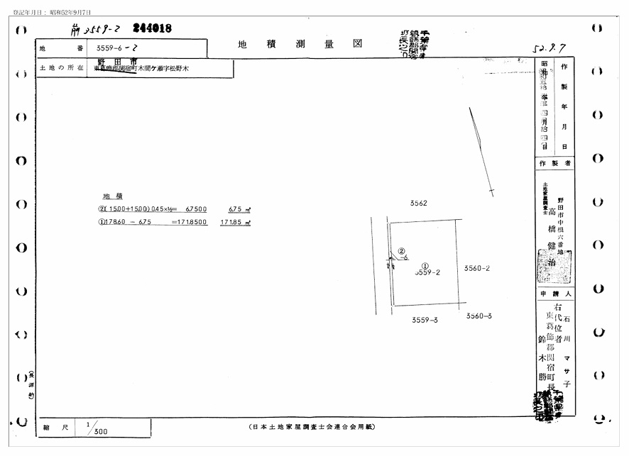 野田市木間ケ瀬3560-2(地番3559-2,3560-2) |