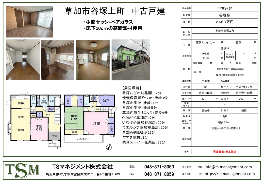樹脂サッシ+床下高気密断熱材 草加市谷塚上町 中古戸建